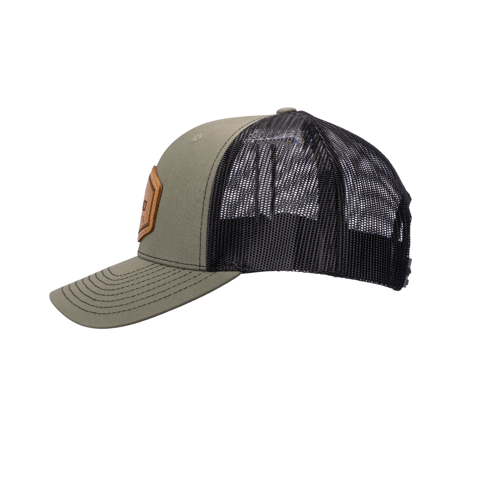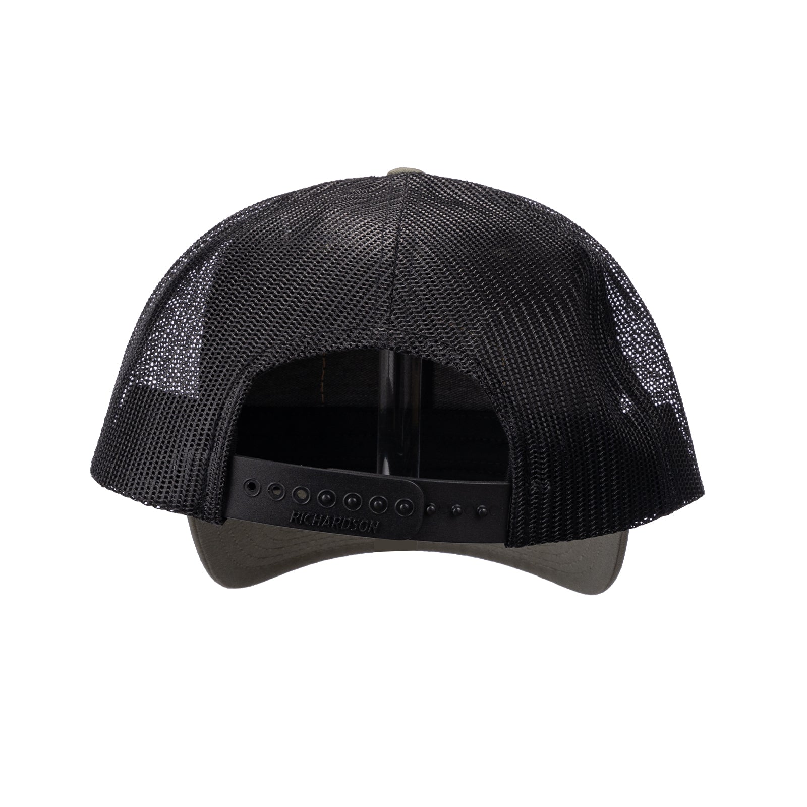 - Olive green cotton front paired with a black mesh back for durability and ventilation.