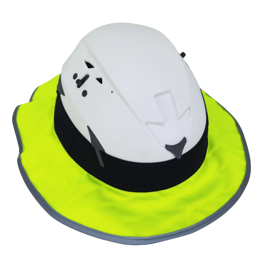 With its 360° coverage, the Land Helmets Sunshade protects the back of your neck, sides of your face, and forehead from direct sunlight. The reflective brim acts as an added layer of protection, deflecting heat and enhancing visibility. This thoughtful design helps reduce fatigue from prolonged sun exposure, allowing workers and climbers to focus on their task safely and efficiently.